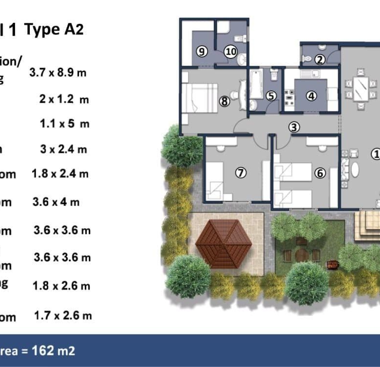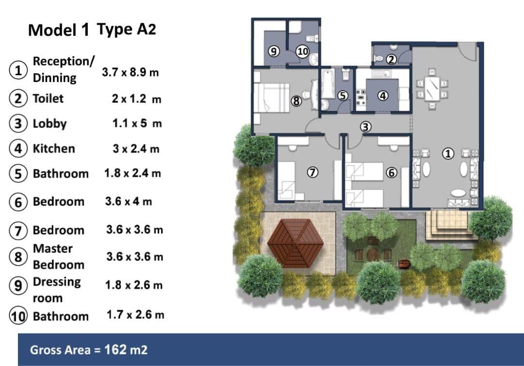 الشقة: 162 متر