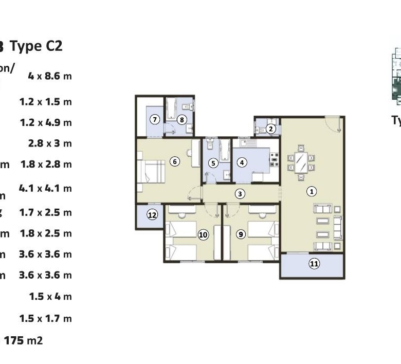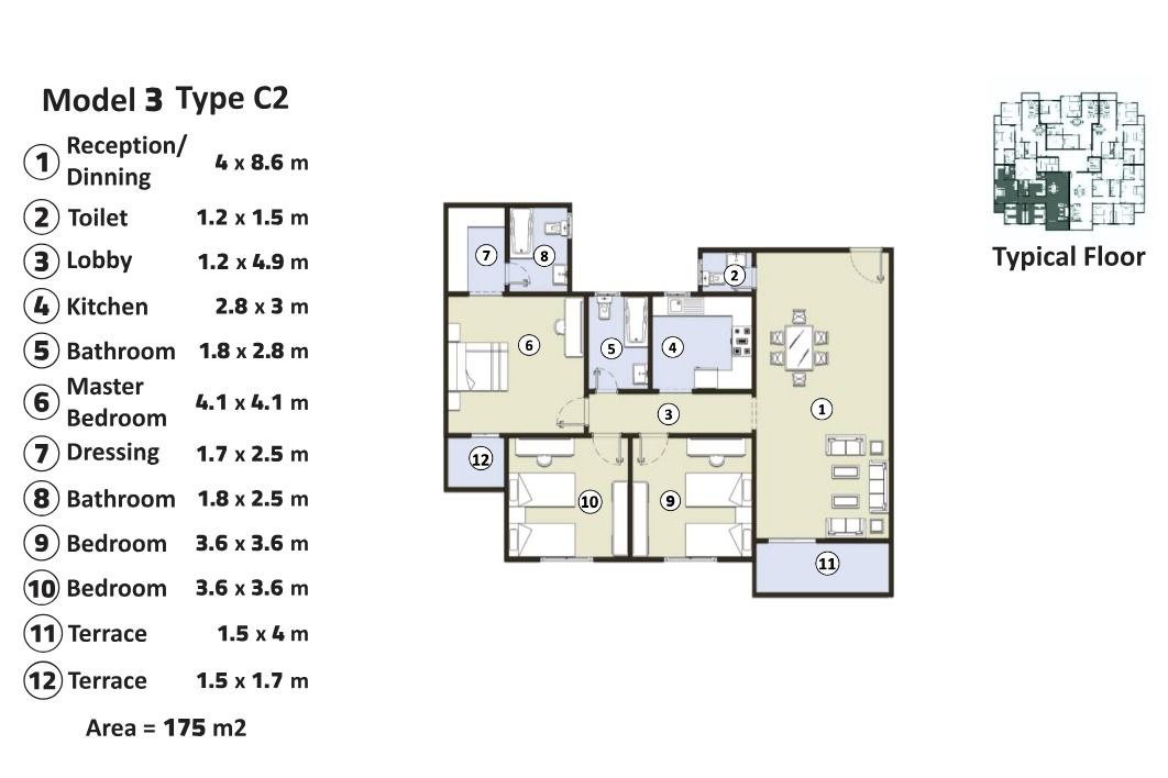 المساحة: 175 متر
