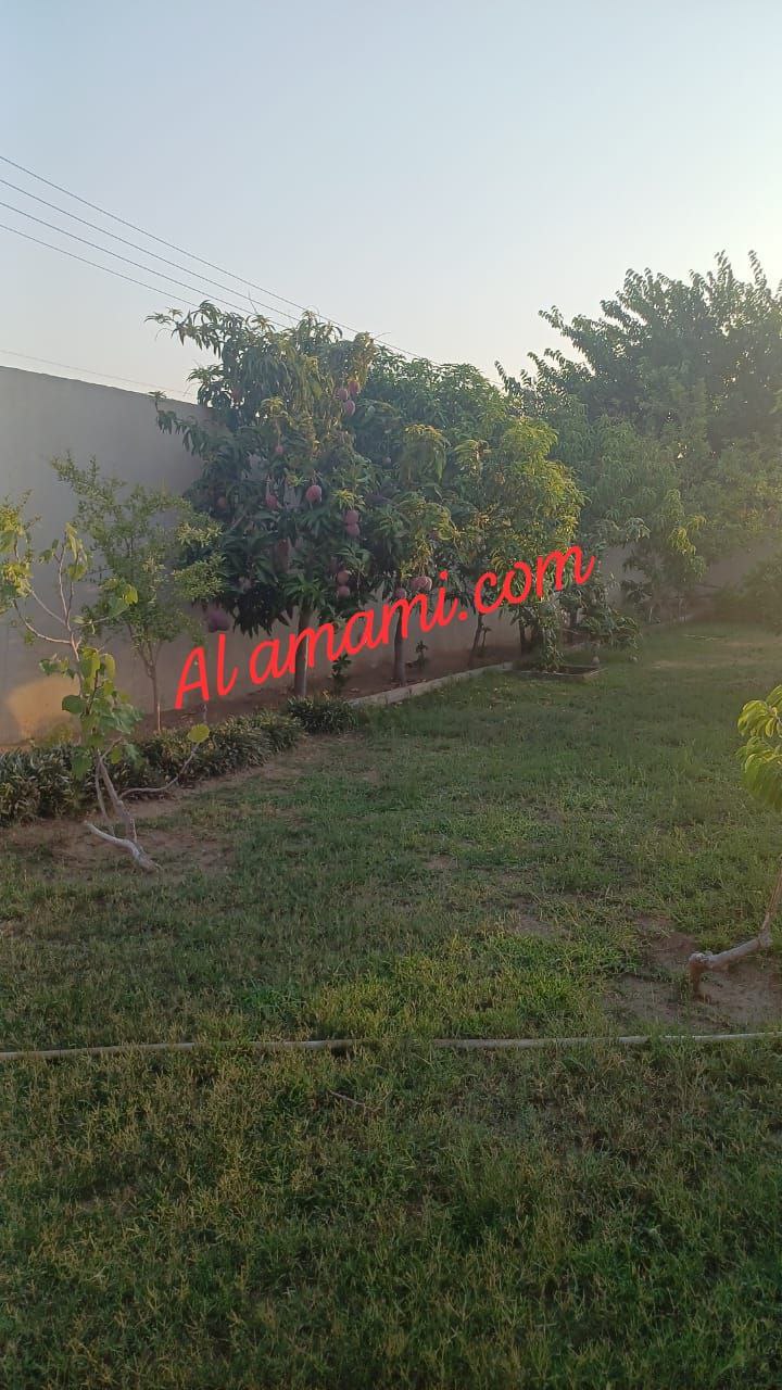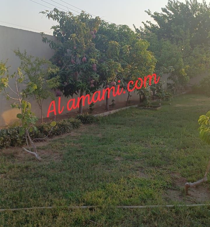 باقي المساحة: مسطح أخضر + أشجار مثمرة