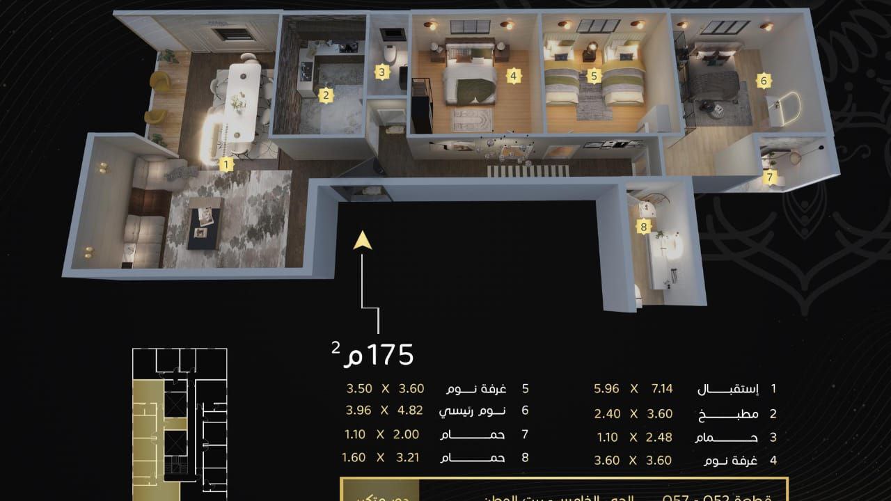 الوحدة: شقة 175 متر – واجهة أمامية