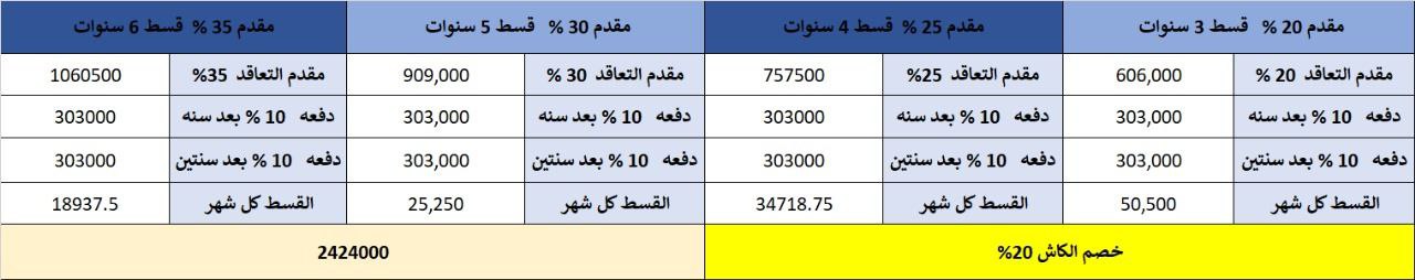 إجمالي السعر شامل الجراج والمخزن 3,030,000 جنيه